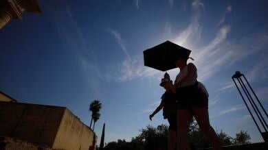 Unos turistas se protegen del sol en Córdoba en plena ola de calorEFE