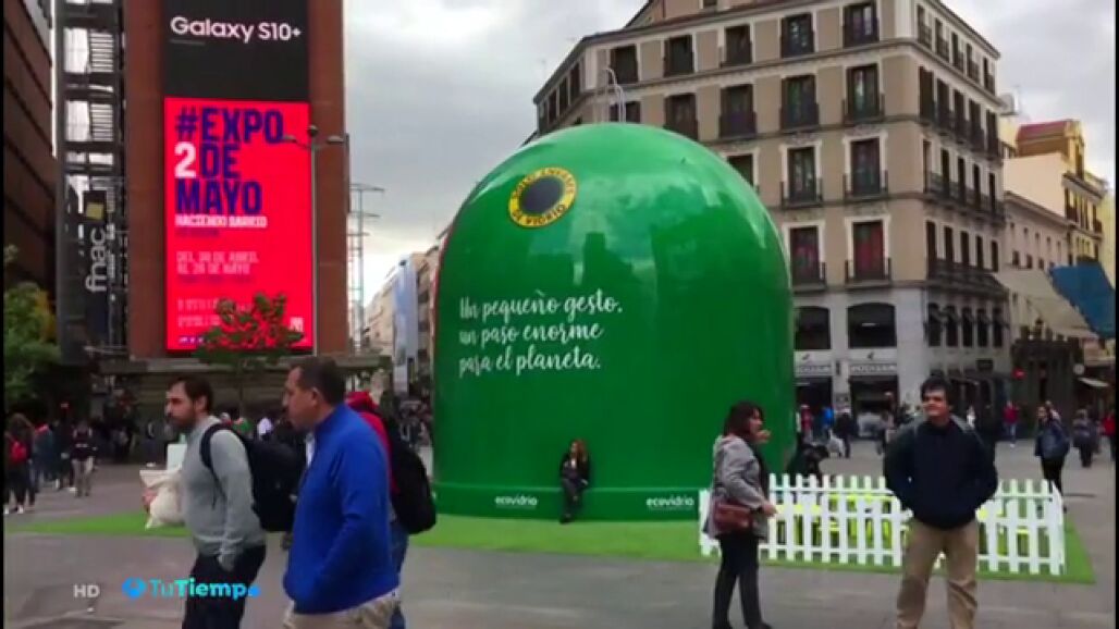 Ecovidrio ha instalado en la Plaza del Callao desde este viernes y hasta el domingo un contenedor gigante de ocho metros de altura para concienciar sobre el reciclaje de vidrio y para homenajear a los ciudadanos cuya participación ha sido "clave" en el crecimiento de la tasa de reciclaje que alcanzó el año pasado la cifra de 76,5 por ciento. Según ha informado la entidad sin ánimo de lucro encargada de la gestión del reciclado de envases de vidrio en España, el contenedor simboliza "el esfuerzo y la perseverancia de la ciudadanía con el reciclaje de envases de vidrio".