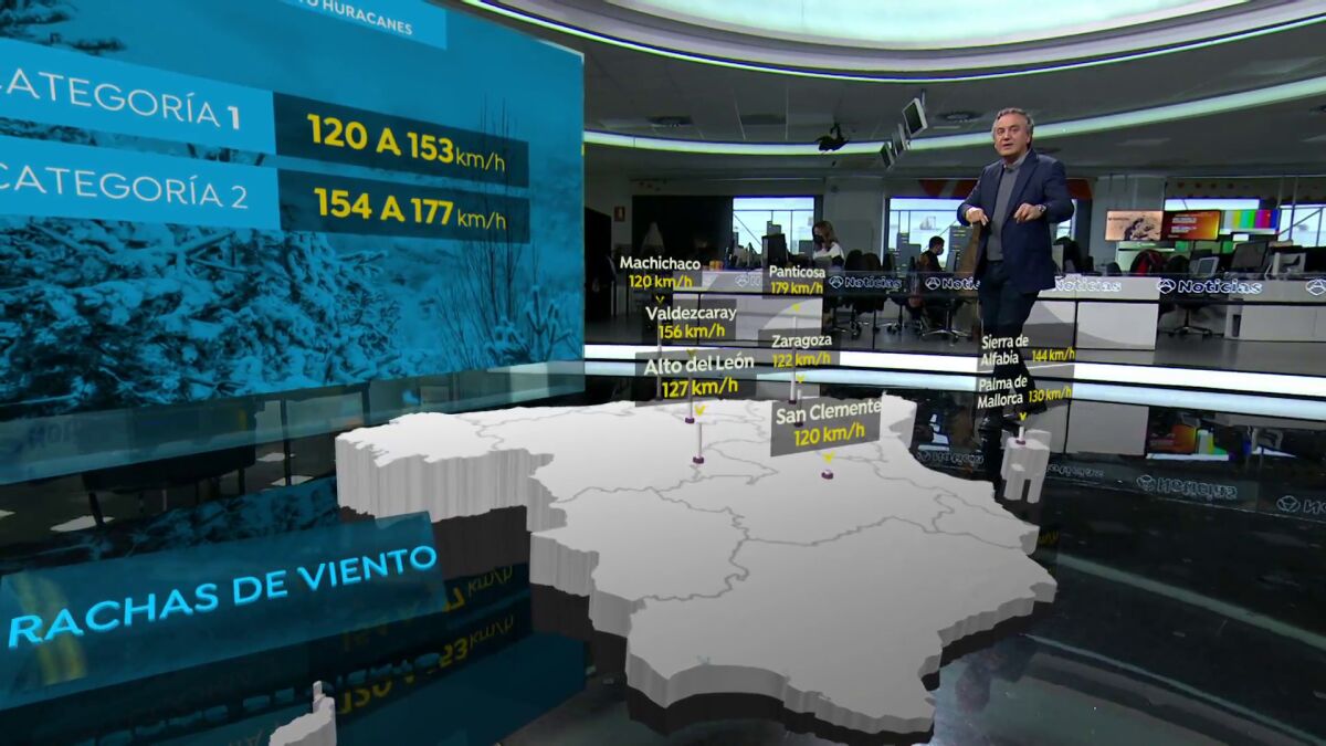 El mapa 3D elaborado por Antena 3 muestra cuáles son las zonas que más han sufrido las consecuencias del temporal, llegando a rozar rachas de casi 180 kilómetros por hora. Es el dato recogido en Penticosa, en Huesca. Esta provincia de Aragón ha registrado la racha de viento huracanado más fuerte del país, con 179 km/h.