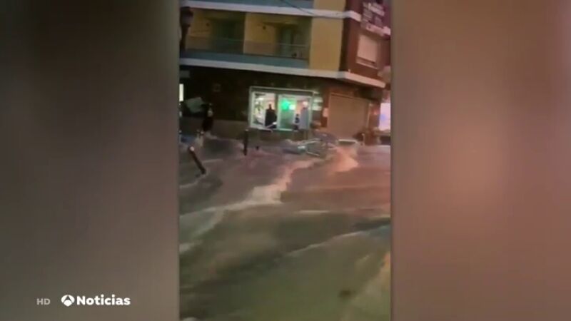 Una fuerte tormenta que cayó este viernes en la localidad valenciana de Benaguacil ha arrastrado el mobiliario de las terrazas e inundado bajos y garajes.