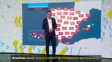 Las temperaturas subirán en todo el país, excepto en el Cantábrico, donde los valores térmicos bajarán o apenas cambiarán. Aparecerán heladas débiles en zonas altas de la cordillera Cantábrica, Pirineos y en montañas del este de Andalucía. Predominarán los vientos de componente este, salvo en Canarias, donde serán de componente este, y serán flojos de dirección variable en Andalucía y en el Ebro.