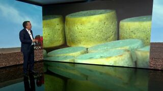 El queso de Cabrales finaliza su proceso de maduración en cuevas montañosas asturianas. Las intensas nevadas de la borrasca 'Filomena' han dificultado la recolección y los ganaderos tienen que ingeniárselas para poder llegar a las cuevas.