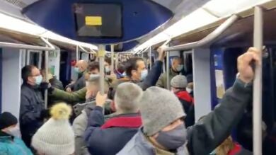 Debido a la gran afluencia de pasajeros,el metro estaba aborrotado. En muchos casos los trenes tardaban en llegar el doble de lo habitual.