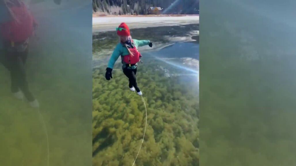 Laura Kottlowski ha compartido esta maravilla de la naturaleza en un vídeo en el que se puede ver como se desliza patinando de forma cuidadosa sobre el hielo para no romperlo.