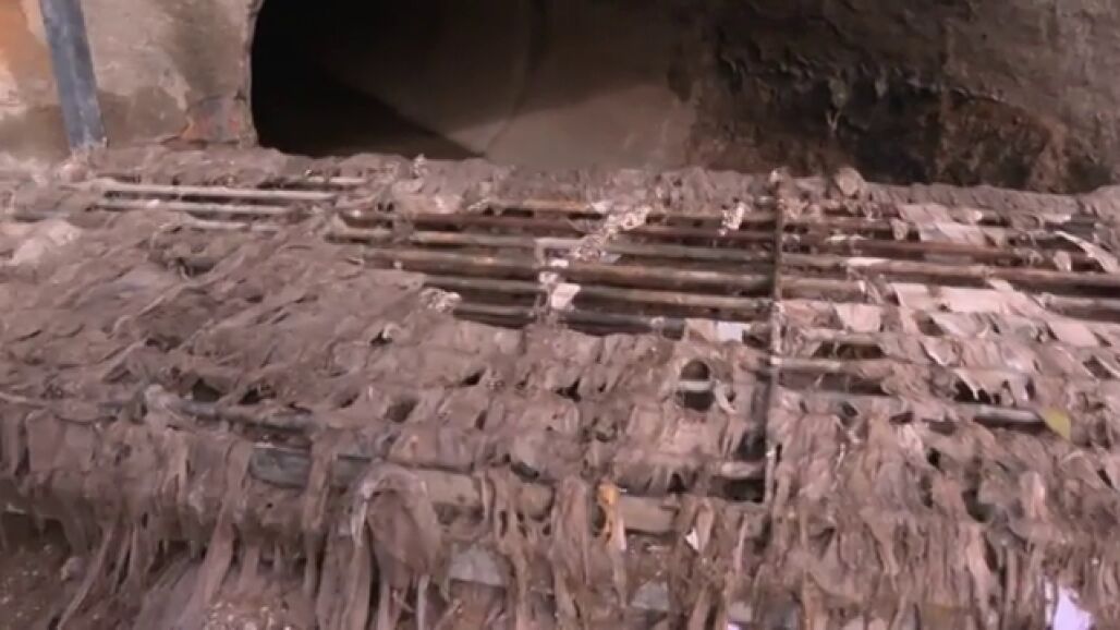 En las imágenes se observa la acumulación de estos residuos contaminantes, como son las toallitas, acumuladas en la rejilla de la salida de uno de los colectores de aguas pluviales.