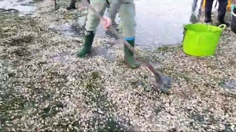 Un mar de berberechos cubre las playas de Noia y Rianxo tras el paso del temporal Domingos
