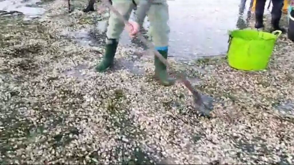 No había tiempo que perder, así que, desde la cofradía, se organizaron para ponerse manos a la obra. No fueron a trabajar al mar, sino a la arena. De allí, cada uno con su capacho, intentaron devolver al agua los ejemplares que todavía estaban vivos para intentar que se sigan criando y puedan alcanzar la talla establecida para su comercialización.