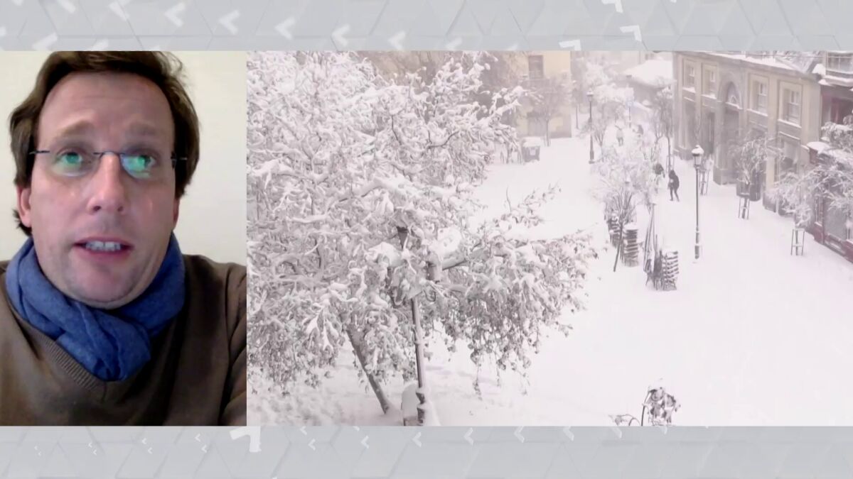 José Luis Martínez Almeida ha comparecido en directo con Antena 3 Noticias para analizar e informar de la última hora de las calles y el estado de las carreteras en Madrid capital tras la intensa nevada provocada por el temporal de nieve de 'Filomena'.