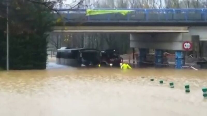 En el vídeo subido por Ibon Pérez a Twitter se puede apreciar el autobús que transportaba a los estudiantes atrapado. Acudía de vuelta a Gernika y quedó atascado en una balsa de agua entre Markina y Gernika. Los estudiantes se encuentran todos bien.