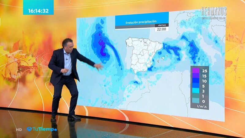 Se tendrá que sacar el paraguas en Galicia, Castilla y León, Extremadura y Huelva. Brasero indica que "donde pueden cerrar el paraguas es en las zonas donde lo han usado últimamente": el en Cantábrico oriental.