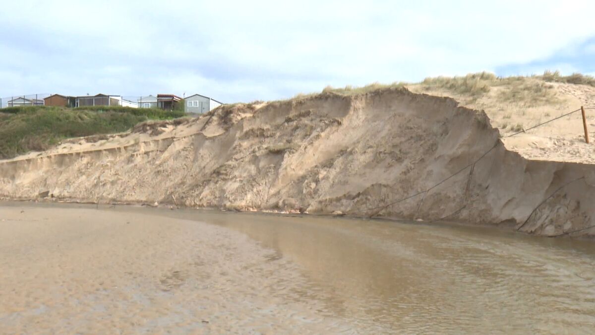 El aspecto de la duna de Loredo hoy no es el de siempre. El mar ha arrastrado una buena parte de la arena. Una mujer nos asegura que ella y su familia se han quedado muy asombrados. "Se ha llevado muchísima duna", añade.