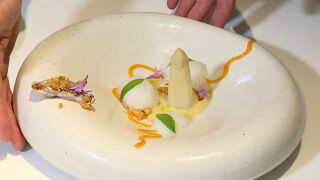 Cuando los compramos crudos tenemos que pelarlos salvando la yema, la parte superior. Después cocerlos a 90 grados durante unos 25 minutos. Y si nos atrevemos, emular una receta con estrella Michelin: con cococha de merluza, aire de espárragos y una crema con curry blanco. "Como del cerdo, del espárrago aprovechamos todo", nos dice Morales.
