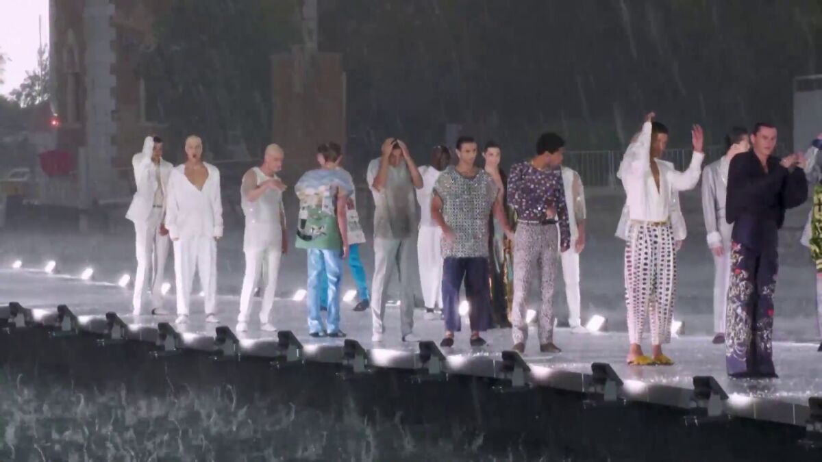 El desfile se adelantó una hora respecto a la que estaba inicialmente fijada, pero a pesar de ello no pudieron evitar la tormenta, aunque si lograron mostrar a todos los presentes su última colección, 'Alta Sartoria' (alta costura de hombre).