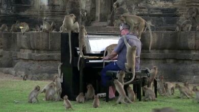 Un concierto de piano con público animal. Es la imagen que protagoniza el templo de la ciudad de Lopburi, en Tailandia, donde un pianista británico dedica el 'Para Elisa' de Beethoven a los monos que habitan en él, con el objetivo de utilizar la música para amansar a las fieras.