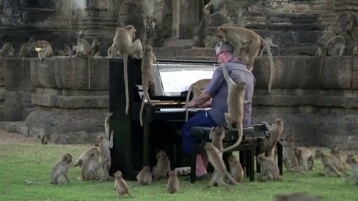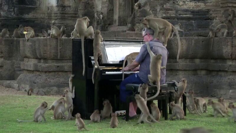 Un pianista británico interpreta el clásico 'Para Elisa' para los monos de Tailandia