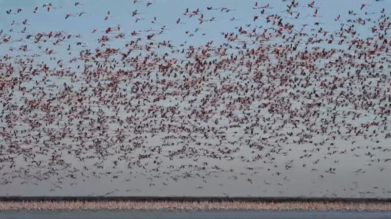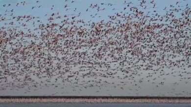 Una bandada de 70.000 flamencos vuelve de color rosa el cielo de las Marismas de Doñana