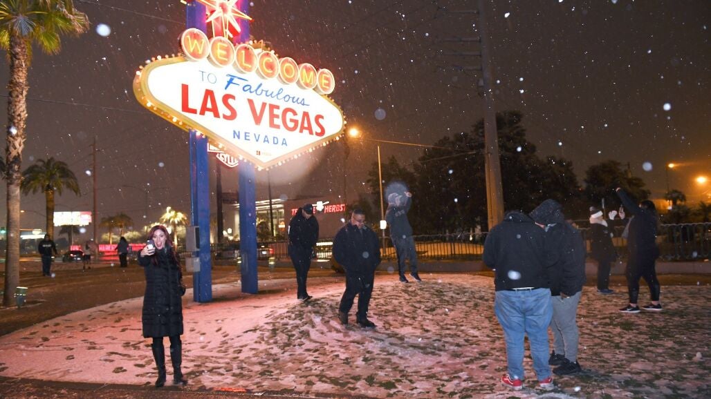 Si hay un estado de EEUU en el que apenas conocen lo que es la nieve, ése es Nevada. Por eso, los turistas se han sorprendido de poder ver Las Vegas cubierta de blanco: se trata de la primera caída de nieve medible allí en más de una década.