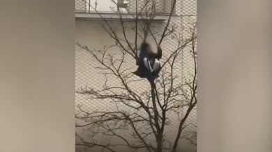 Vídeo | Tremenda imprudencia en plena borrasca Herminia: un joven se encarama a un árbol de 10 metros en Santander