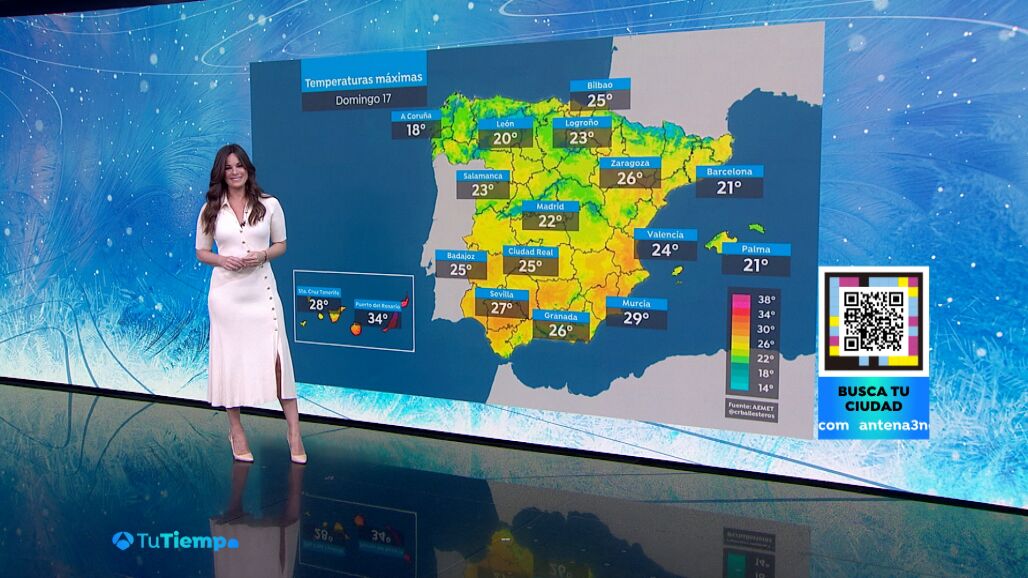Las temperaturas aumentarán, indicando un adelanto del calor típico de mayo. A Coruña registrará 18 ºC, León alcanzará los 20 ºC, Bilbao y Badajoz llegarán a los 25 ºC, y Sevilla superará los 27 ºC. Murcia espera temperaturas de hasta 29 ºC, mientras que Puerto del Rosario registrará el día más caluroso del año con 34 ºC a la sombra.
