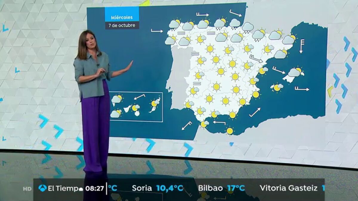 Este miércoles habrá cielos nubosos o cubiertos y lluvias débiles, algo más abundantes en el Cantábrico oriental y Pirineo occidental, con tendencia a escampar a lo largo del día.