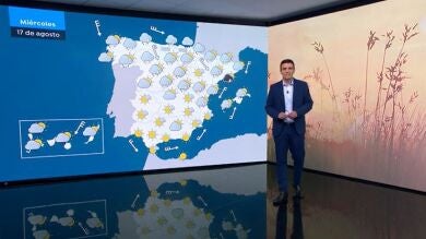 La previsión meteorológica para este miércoles 17 de agosto señala una bajada generalizada de las temperaturas en gran parte del país. Se prevé lluvias y tormentas localmente fuertes en Cataluña - en el litoral norte de Tarragona y en el de Barcelona-. Puede llover con gran intensidad, haber rachas muy fuertes de viento y granizadas con piedras de más de 2 cm de diámetro.