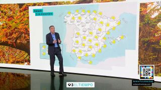 Pero quizá lo más destacado para el sábado sea el aumento de temperaturas que nos marca el modelo de previsión. No es que vayamos a volver al verano, pero serán desde luego más elevadas que las de estos últimos días. Desaparecen por completo las heladas de primera hora, y por la tarde podremos llegar a 15º en León, 16º en Toledo, 17º en Cáceres, 18º en Santander y Granada, 19º en A Coruña y en Bilbao, 20º en Oviedo y en Zaragoza, 21º en Sevilla, 22º en Melilla, 23º en Málaga y Valencia o 24º en Murcia y Alicante.