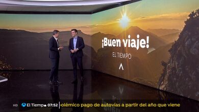 ¡Buen viaje! Con esta frase hemos empezado la sección del tiempo, y así será, porque esta tarde la meteorología no va a traer complicaciones en esta operación salida. Lo que, sí notarán los que paren a hacer un alto en el camino, será que el calor vuelve a aumentar en la Península. Será una subida fugaz, por que mañana las temperaturas volverán a bajar. Si no han hecho la maleta y si se dirigen al norte no olviden la manga larga, con una prenda les bastará, solo hará falta el sábado. Porque el domingo y los primeros días de la semana traerán de vuelta temperaturas muy calurosas. Las vacaciones empiezan con vaivén térmico.