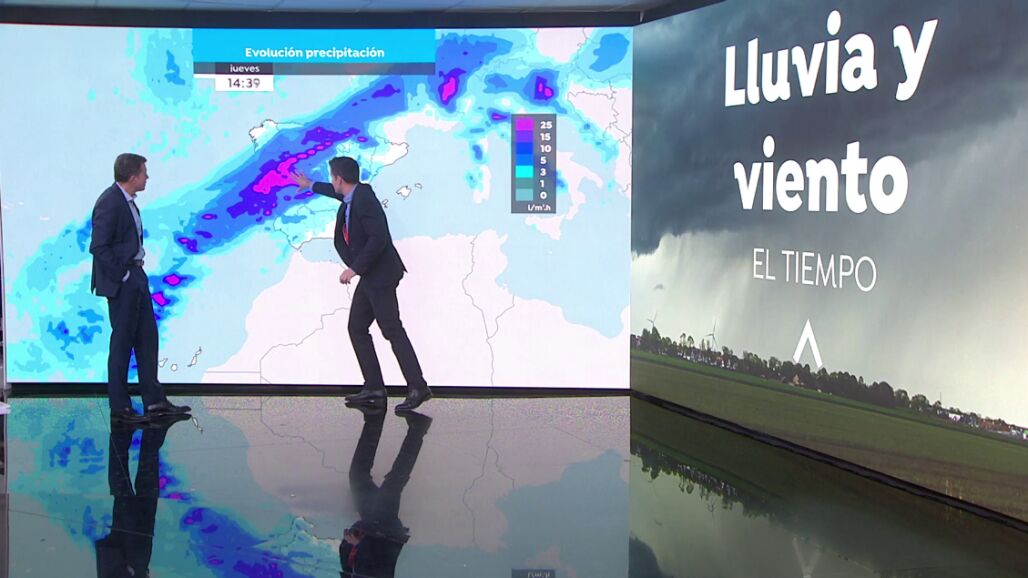 Día de lluvia y viento en las islas Canarias y casi toda la Península. Serán persistentes en el centro, los Pirineos y Huelva. Apenas llegarán a las costas del Mediterráneo. Las temperaturas solo bajan hoy en el norte.