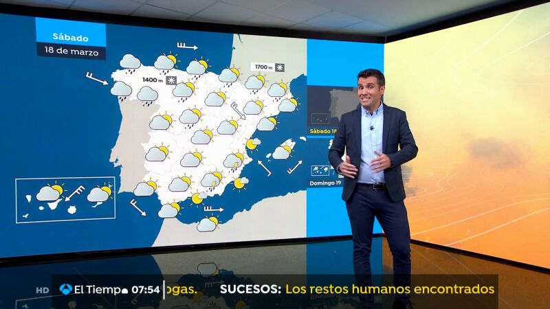Mañana sábado las temperaturas vuelven a descender algo. Las lluvias van a seguir en el extremo norte pero serán poco probables en el centro con alguna tormenta en las zonas de la comunidad valenciana. El día de San José esperamos un domingo propio del mes de mayo con cielos prácticamente despejados en todo el interior.