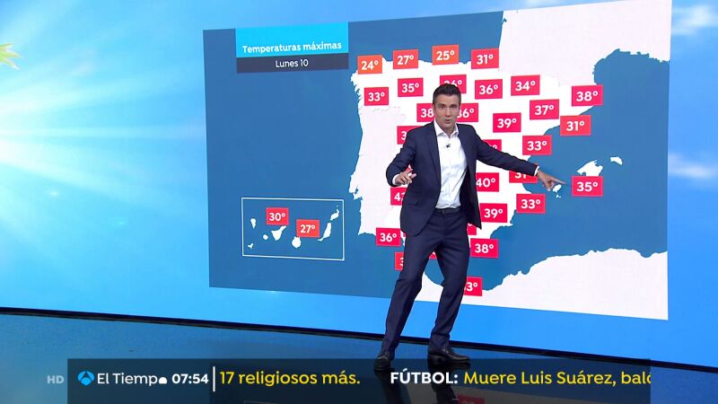 Señala César Gonzalo que este lunes la ola de calor alcanzará su pico de temperaturas en el centro de la Península donde pueden superarse los 40 grados.