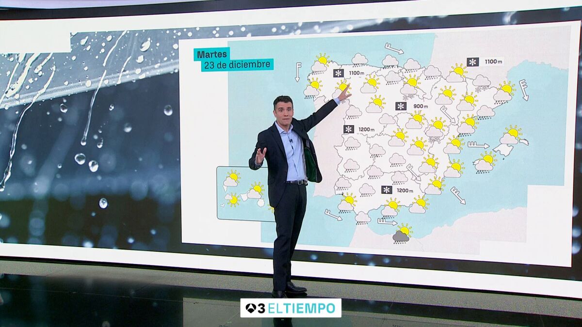 Los que estrenen los regalos de Papá Noel a primera hora, se encontrarán con frío intenso, porque este 25 de diciembre comenzará con heladas generalizadas. Además, las temperaturas máximas se desploman en la mitad norte, gracias a una nueva inyección de frío polar. Las lluvias abandonarán Andalucía, seguirán en las comunidades del Cantábrico y se extenderán por las costas de Cataluña, Comunidad Valenciana, Murcia y Baleares. Podrán tener unas blancas navidades en los Pirineos y el interior de Cataluña, con posibles nevadas abundantes, que además podrán aparecer a solo 600m de altura. En el resto si el baile de borrascas no varía, tendremos un día de Navidad tranquilo, incluso con grandes claros por la tarde.