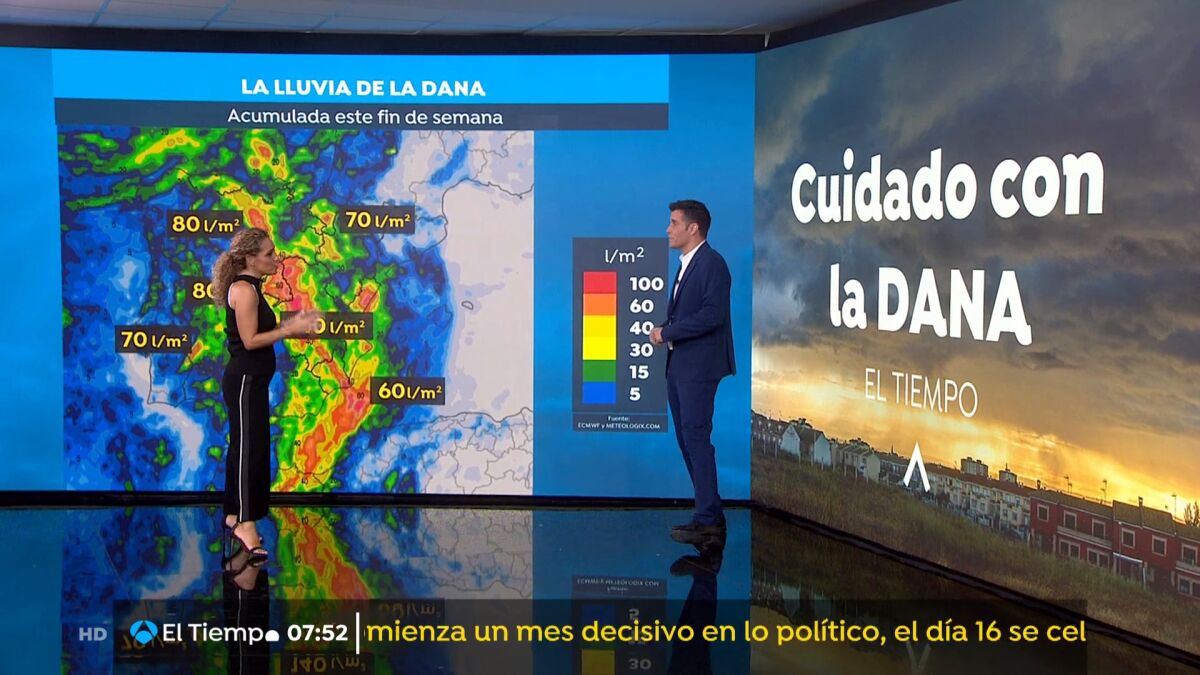 En la mayor parte del País aún hoy no sentiremos los efectos de esta DANA. En el Noroeste es un frente el que dejará lluvias en Galicia, Asturias y León, que ya podrían venir acompañadas de tormenta. Durante la tarde los chaparrones aparecen con fuerza en el Pirineo donde obligan a activar, ya hoy, el aviso naranja. Durante la noche se extenderán a las sierras de La Rioja, Soria, Teruel y Guadalajara. Al final del día, más bien ya en la madrugada del sábado, en las sierras de Segovia y del norte de la Comunidad Madrid es donde pueden aparecer las primeras tormentas fuertes de la DANA. Hoy solo bajan las temperaturas en Galicia y el oeste de Extremadura, en el resto esta tarde será tan cálida como la de ayer.