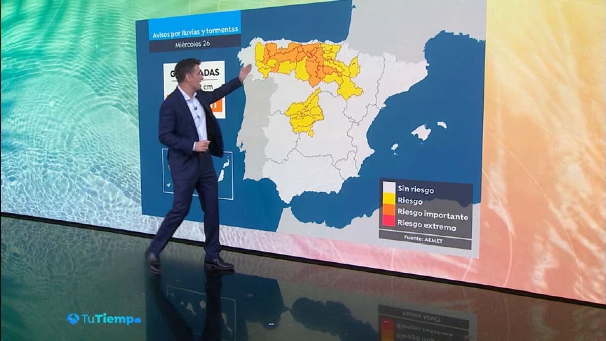 Destaca por la tarde el noroeste, donde también se esperan fuertes granizadas, con avisos en el interior de Galicia, y oeste de Castilla y León. Será poco probable que se den precipitaciones en el sureste, en las costas del Mediterráneo (salvo en Andalucía) y en las costas del Cantábrico. En Canarias las nubes serán abundantes en el norte, donde podrán darse algunas lluvias.