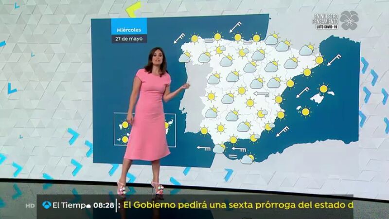 Las temperaturas diurnas ascenderán en gran parte del norte y del centro, y permanecerán con pocos cambios o descenderán en el resto del país. Los valores se mantendrán significativamente altos en Canarias y en Galicia, y se superarán los 30/32 grados en puntos de Canarias y en el sur de la vertiente atlántica.