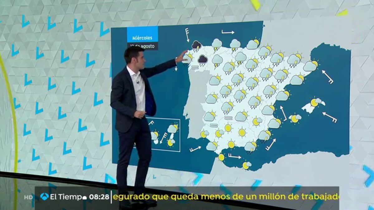 Este miércoles la Agencia Estatal de Meteorología (Aemet) prevé chubascos y tormentas localmente fuertes en Galicia y en el Cantábrico occidental. El cielo estará nuboso o cubierto en el noroeste peninsular y con tormentas abundantes. En zonas como La Coruña y Lugo a primeras horas de la mañana las tormentas podrás ser muy fuertes.