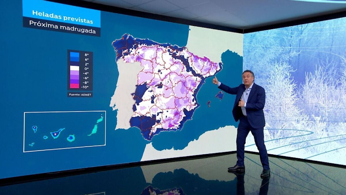 El frío se intensifica en las últimas horas. César Gonzalo se ha trasladado al embalse del Pontón Alto, en Segovia para sentir de primera mano cuáles son esas bajas temperaturas. Justo a la orilla del embalse Gonzalo muestra el hielo que cubre toda esa parte del embalse. Esas bajas temperaturas van a continuar este fin de semana. En el amanecer del domingo ese frío polar aún seguirá dejando intensas heladas.