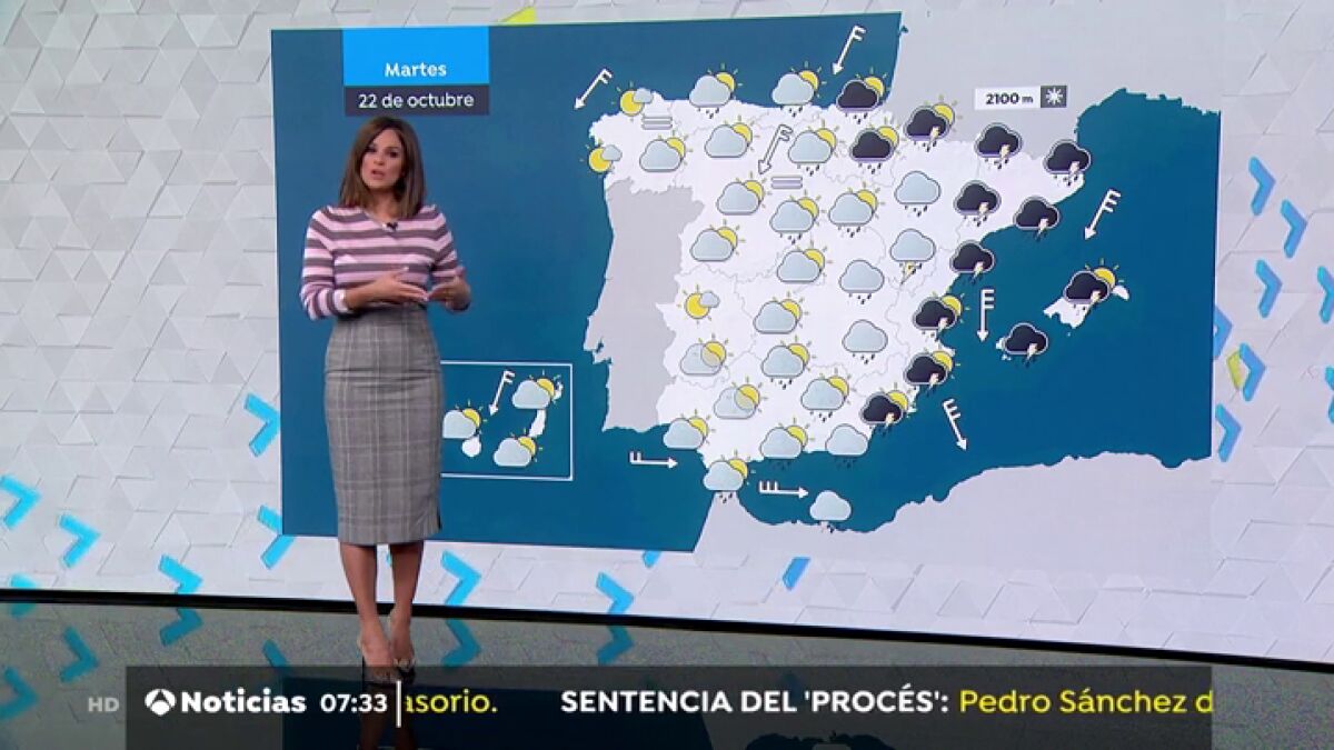 La mayor inestabilidad se concentrará en el área mediterránea, con chubascos y tormentas fuertes, que se extenderán durante el día a otras zonas de la Península, aunque con menor probabilidad e intensidad cuanto más hacia el oeste.