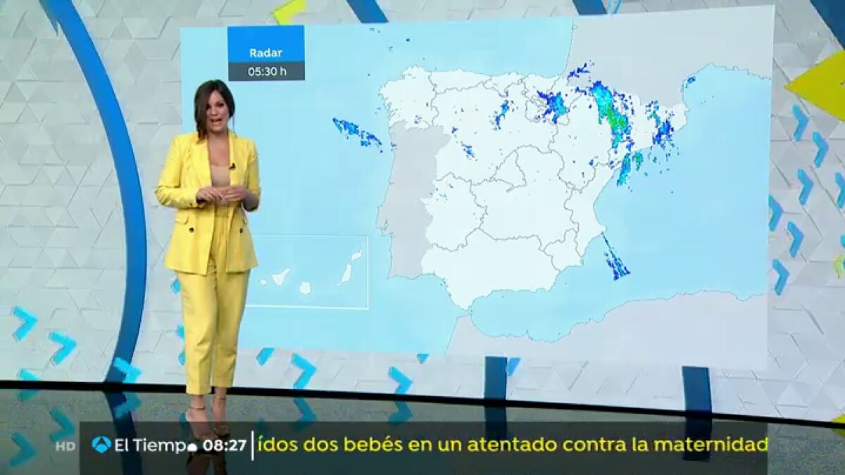 Se espera predominio de cielos nubosos o cubiertos y chubascos y tormentas ocasionales en amplias zonas. Al principio, podrán ser de cierta intensidad o persistencia en zonas del nordeste peninsular, principalmente Castellón, Tarragona y Pirineos, tendiendo a remitir por el este.