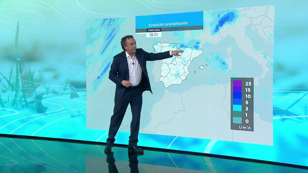 De cara al miércoles, las lluvias serán más débiles en el extremo norte, cantábrico oriental y zona pirenaica. Fuertes rachas de viento en el bajo Ebro y noroeste de la comunidad gallega. Menor nubosidad en el área Mediterránea y el archipiélago balear y canario.