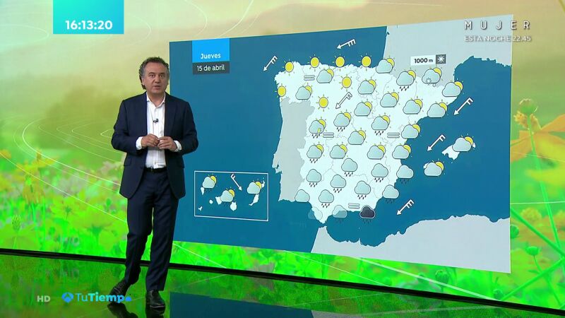 Este miércoles se esperan lluvias en el área del Estrecho que tienden a extenderse por el sur y sureste peninsulares, llegando a mediodía al norte de la meseta Sur y sur de la meseta Norte, con tormentas en el entorno de los montes de Toledo y el sistema Central, y posiblemente también en áreas del sistema Ibérico.