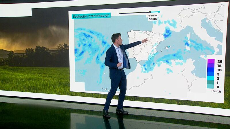 La inestabilidad persistirá en el norte y zonas de montaña, con cielos cubiertos y tormentas por la tarde que podrán ser localmente intensas en el interior de Cantabria, el alto Ebro, Pirineos y meseta norte. Con avisos activos de nivel amarillo por chubascos fuertes, granizadas y rachas de viento en el este de Galicia, interior de Cantabria, norte de Castilla y León, La Rioja y norte de Navarra, Huesca y Cataluña. En el centro, sur y Baleares predominará el tiempo más estable, con algunas nubes de evolución surgiendo en zonas de montaña. En Canarias, la nubosidad y lluvias débiles se mantendrán en el norte de las islas. Además, el viento de levante soplará con fuerza en el área del Estrecho.