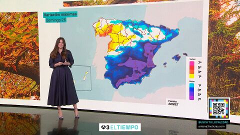 Las temperaturas diurnas bajarán, mientras que las nocturnas subirán. En el sur ocurrirá lo contrario: subirán las diurnas y bajarán las mínimas. Persistirá un marcado contraste térmico entre el norte y el sur peninsular: en torno a 15 °C en Huesca, Burgos o Logroño, frente a más de 30 °C en Murcia, Córdoba o Sevilla.