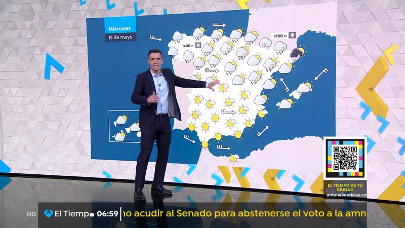 Este miércoles 15 de mayo el día llega con chubascos de nuevo en la mitad norte. Podrán ser fuertes en el norte de Mallorca y litoral de Cataluña. No se esperan precipitaciones en el resto de la Península, en un día con temperaturas máximas que siguen descendiendo.