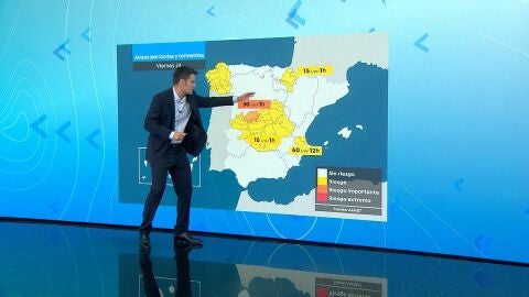 En el centro de la Península también vemos avisos porque las lluvias podrían activare para llegar a última hora de la jornada a zonas de la Comunidad de Madrid y Toledo.