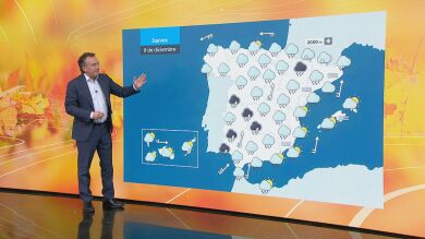 Las borrascas van a pasar la segunda parte del puente en nuestro País. Serán varias, y vendrán encadenadas. Hoy la primera de ellas podrá dejar lluvias fuertes en las Islas Canarias, donde se activa los avisos de nivel naranja por fuertes precipitaciones, también el viento alcanzará rachas muy fuertes. Desde el Archipiélago las lluvias se van acercando a la Península. A partir del mediodía irán avanzando por el oeste, atención en Huelva y el sur de Badajoz donde se activa el aviso por fuertes lluvias. De forma más débil irán apareciendo en el resto de Extremadura, Salamanca, Zamora y Ávila. Llegando por la tarde a puntos de Castilla la Mancha, en la Comunidad de Madrid llegarán al final de la jornada. En el resto de la Península y Baleares se van a mantener los cielos nublados, podrían dejar escapar tan solo algunas gotas. A pesar de la llegada del frente, las temperaturas no descenderán de forma significativa, seguiremos con unos 12ºC en el centro, 15ºC a orillas del Cantábrico. En la región de Murcia llegarán a los 20º y en Canarias superarán los 24º de temperatura máxima.