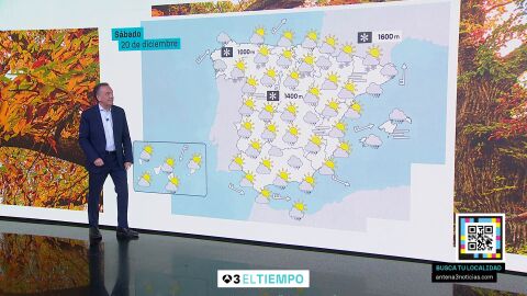 Ese frío viene para quedarse y el lunes, día de la lotería de Navidad, amaneceremos con heladas en muchas zonas y con el paso de borrascas y frentes atlánticos que dejarán cielos nubosos o cubiertos y precipitaciones generalizadas, aunque menos abundantes que en días previos. Los mayores acumulados se prevén en Galicia, sierras del sur peninsular y especialmente en Baleares y el nordeste. Y de nuevo con nevadas en los principales entornos de montaña del país, sin descartarlos en zonas aledañas, especialmente de la meseta Norte, este de la Sur y del nordeste peninsular.