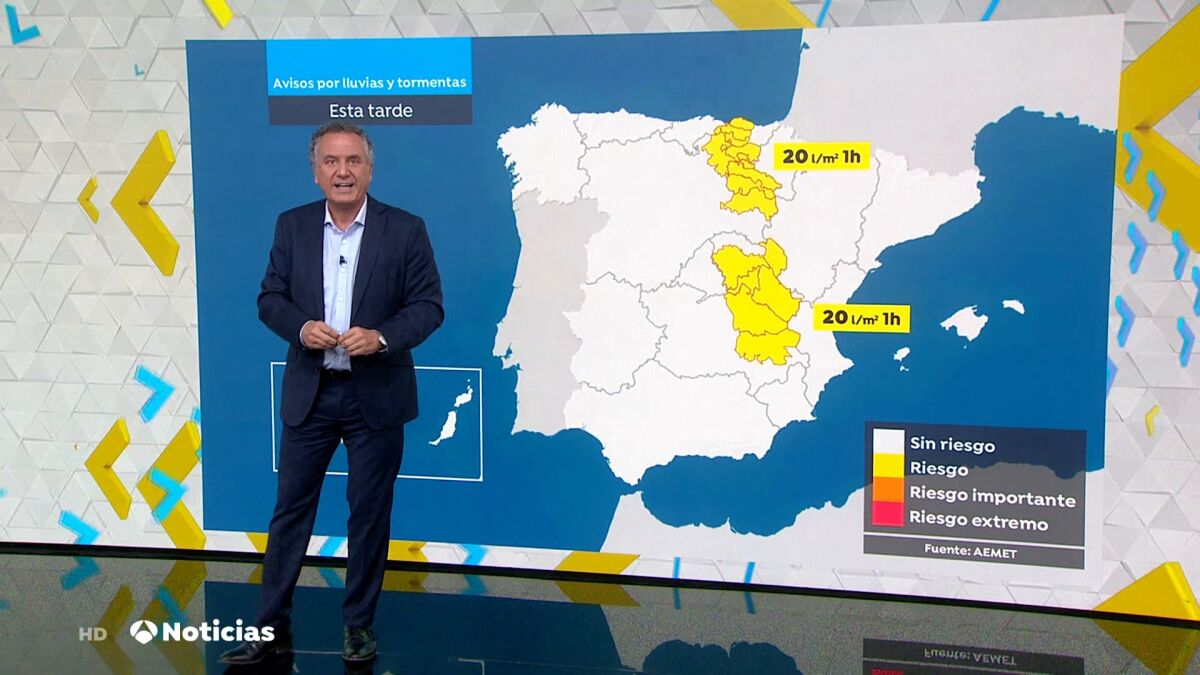 Ahora hay que prestar atención por un lado en el este de Castilla-La Mancha, donde la AEMET acaba de elevar el nivel naranja de aviso en la provincia de Cuenca por las tormentas fuertes que ya están cayendo en Tarancón, por ejemplo, y alrededores. Tenemos avisos también, de momento de nivel amarillo en las provincias de Guadalajara y Albacete.