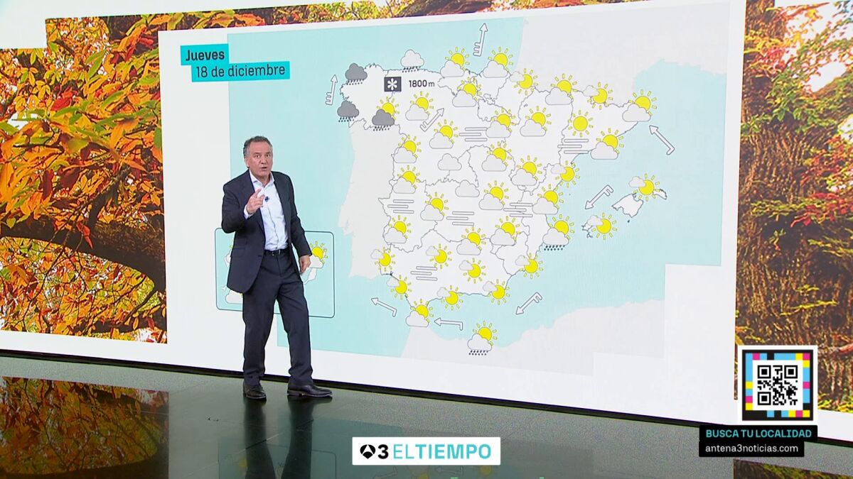Aquí los bancos de niebla matinales darán paso a esas nubes medias y bajas que mantendrán el cielo gris durante buena parte de la jornada e impedirán que suban las temperaturas en la zona centro. Sin embargo, en el resto de España sí sumamos algún grado más por la tarde. Algunas de las máximas previstas: 18º en Murcia y en Bilbao, 17º en Sevilla, en Valencia y en Santander; 9º en Ávila y 19º en Palma.