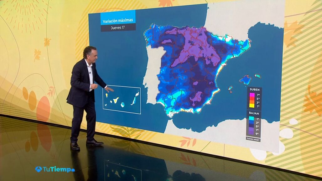 Restaremos grados desde primera hora con una amanecer de nuevo fresco en muchas zonas y hasta frío en el interior de la mitad norte con mínimas de 5º en Burgos, 6 en Ávila o 7 en Teruel, zonas habitualmente frías, sí, pero donde estos días hemos salido a la calle temprano con el doble de grados, 12º, de mínima y hoy desde luego habrá que abrigarse más. Y por la tarde se notará la bajada de la temperaturas en mucho lugares donde estábamos pasando con facilidad los 20º y la máxima del jueves se quedará en 14º en Cuenca, por ejemplo, o en Lugo, 15º en Logroño o Guadalajara y 17º será la máxima prevista en Madrid.