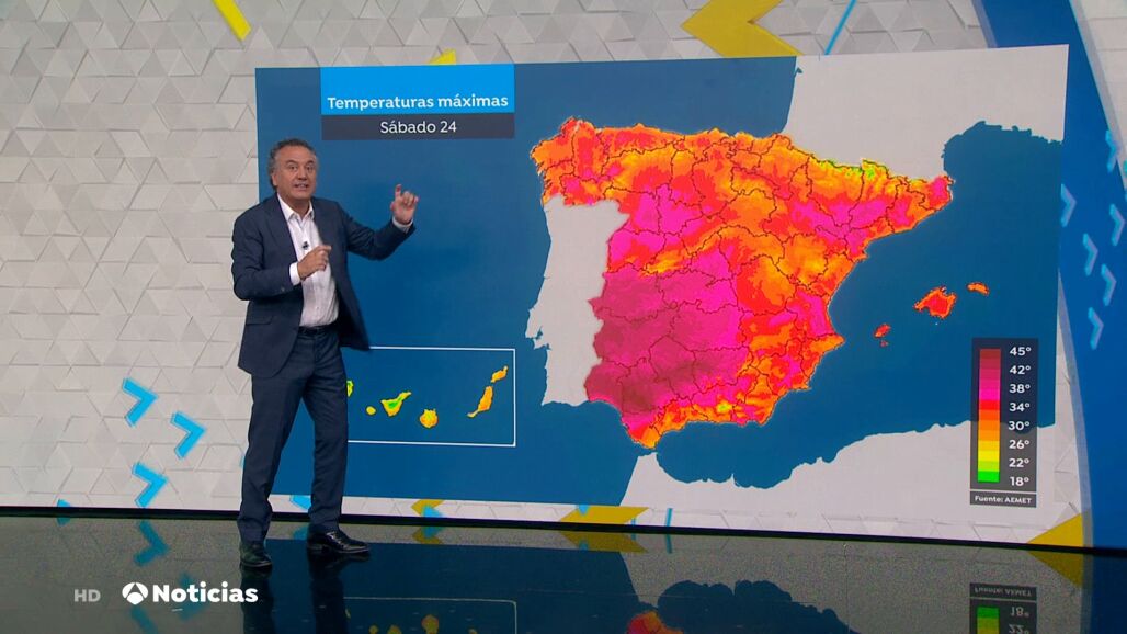 El presentador del tiempo de Antena 3, Roberto Brasero, explica cómo será esta primera ola de calor en verano, que comenzará este sábado y se prolongará hasta el miércoles. ¿Dónde subirán más las temperaturas?.